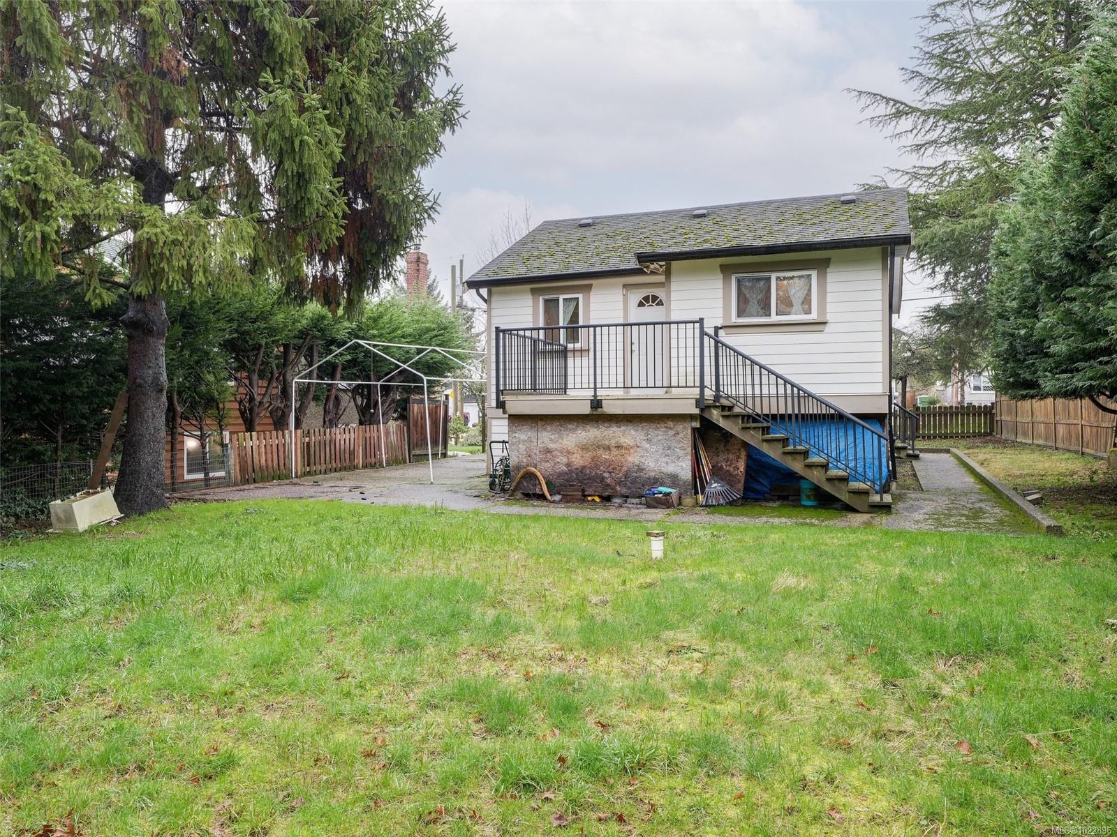 This centrally located 3 bedroom home presents an excellent opportunity—whether as a holding property, redevelopment or to build sweat equity with updates to the existing residence. The main level features a separate living room, an eat-in kitchen with access to the back deck, 2 beds, and a 4pc bath. The lower level offers added flexibility with an additional bedroom, laundry area, workspace, and ample storage. The large partially fenced backyard is a highlight, providing privacy and plenty of space for entertaining, pets, kids, and gardening enthusiasts. Enjoy nearby walking trails at Cuthbert Park and along the Gorge Waterway, perfect for scenic strolls close to home. Recreation options abound with Pearkes, the public library, SilverCity Theatre, sports fields and playgrounds at Hampton Park. Ideally situated between Tillicum Shopping Centre and Uptown, this home offers a wide variety of shopping, dining and amenities within walking and cycling distance. Proudly offered at $849,900.